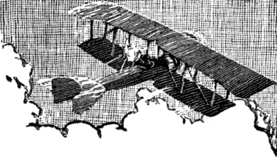 In order to show the general reader the way in which the machine operates, let us fancy ourselves ready for the start. The machine is placed upon a single-rail track facing the wind, and is securely fastened with a cable. The engine is put in motion, and the propellers in the rear whir. You take your seat at the center of the machine beside the operator. He slips the cable, and you shoot forward. An assistant who has been holding the machine in balance on the rail starts forward with you, but before you have gone 50 feet the speed is too great for him, and he lets go. Before reaching the end of the track the operator moves the front rudder, and the machine lifts from the rail like a kite supported by the pressure of the air underneath it. The ground under you is at first a perfect blur, but as you rise the objects become clearer. At a height of 100 feet you feel hardly any motion at all, except for the wind which strikes your face. If you did not take the precaution to fasten your hat before starting, you have probably lost it by this time. The operator moves a lever: the right wing rises, and the machine swings about to the left. You make a very short turn, yet you do not feel the sensation of being thrown from your seat, so often experienced in automobile and railway travel. You find yourself facing toward the point from which you started. The objects on the ground now seem to be moving at much higher speed, though you perceive no change in the pressure of the wind on your face. You know then that you are traveling with the wind. When you near the starting-point the operator stops the motor while still high in the air. The machine coasts down at an oblique angle to the ground, and after sliding 50 or 100 feet, comes to rest. Although the machine often lands when traveling at a speed of a mile a minute, you feel no shock whatever, and cannot, in fact, tell the exact moment at which it first touched the ground. The motor close beside you kept up an almost deafening roar during the whole flight, yet in your excitement you did not notice it till it stopped!