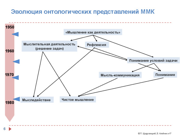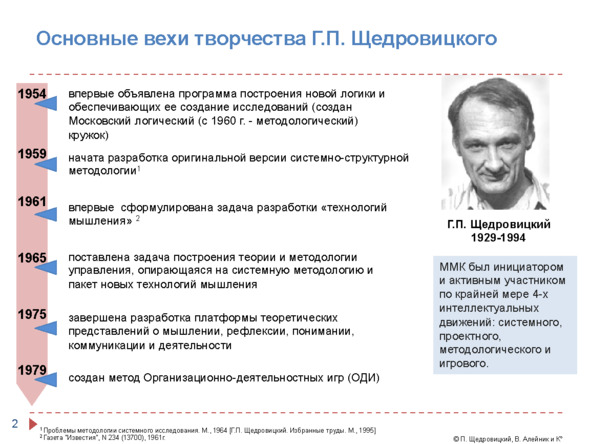 Я принадлежу к философской школе, которая обычно называется Московским методологическим кружком (ММК). В середине 50-х годов она называлась Московским логическим кружком.