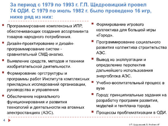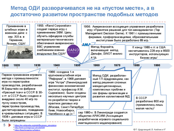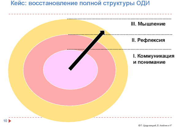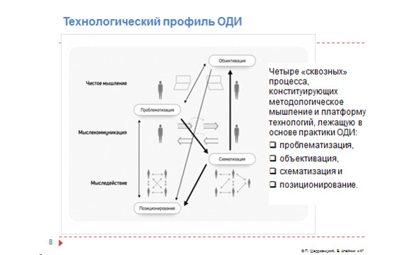 Появлению метода ОДИ предшествовала не только разработка новой логики и совокупности технологий мышления, но и разработка онтологических оснований игровой практики — о чем я скажу дальше, — и своеобразной теории управления, которая сегодня имеет самостоятельное развитие безотносительно к игропрактике.