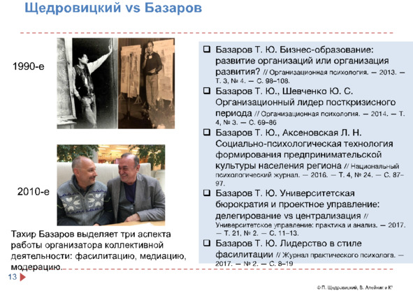 ● Методическая рефлексия «Возвращение блудного сына в метод». Обсуждение того, что в методике стало больше фасилитации и анимации, нежели смысла.