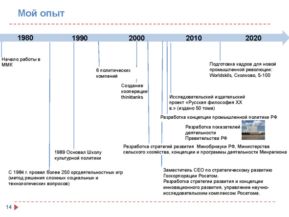 Объект (предприятие, ИПК и т.д.) я должен поставить в прошлое, которое хотя и продолжает быть, но всегда остается в топе прошлого: оно там сформировалось. И с точки зрения оргуправленца — то, что есть сейчас, есть прошлое. Ведь управлять настоящим — невозможно, управлять можно только по отношению к будущему. А то, что реализуется «здесь и теперь», уже неуправляемо, оно есть и неотвратимо происходит.