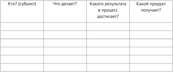 ● Проблематизируется группа вопросом «Кому это полезно?» В результате выделяется список стейкхолдеров, связанных с предметом. После этого определяются наиболее важные стейкхолдеры и то, какую пользу предмет им даёт.