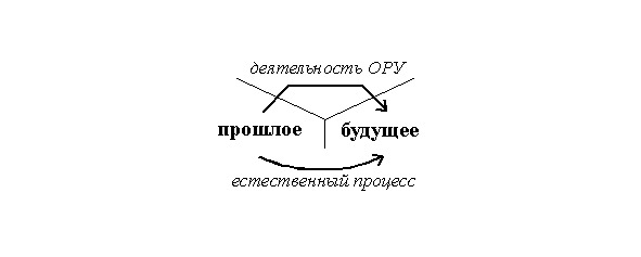 Эта позиция меняет всю картинку. Здесь, в настоящем, есть оргуправленец или ОРУ-служба, которые имеют свое определенное отношение к прошлому и свои определенные установки на будущее. Например, он может считать, что жизнь есть жизнь, над которой он — как над реальностью — не властен. А поэтому и суетиться не надо. И это — его позиция.