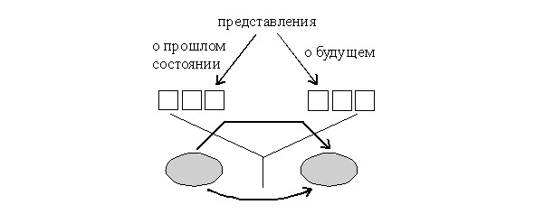 Она [схема шага развития] содержит три, как принято говорить, «подсистемы» целого, которые мы будем трактовать в соответствии с современными методологическими представлениями более точно — как три временных пространства: прошлого, настоящего и будущего. В пространстве прошлого находятся существующие сейчас системы <…>, которые нужно совершенствовать и развивать, в пространство будущего мы помещаем представления о системах <..>, которые мы считаем желаемыми и соответствующими нашим современным запросам и требованиям, в пространстве настоящего должна находиться та система мыследеятельности, которая может и призвана посредством своих организационно-технических действий (оргпроектирования, целевого комплексного программирования, планирования, нормировки, оснащения других мыследеятельностей средствами и методами работы, прямых организационных действий, руководства или управления) осуществить преобразование или развитие существующих систем <…> к желаемым и заданным нашими проектами, программами и планами состояниям.