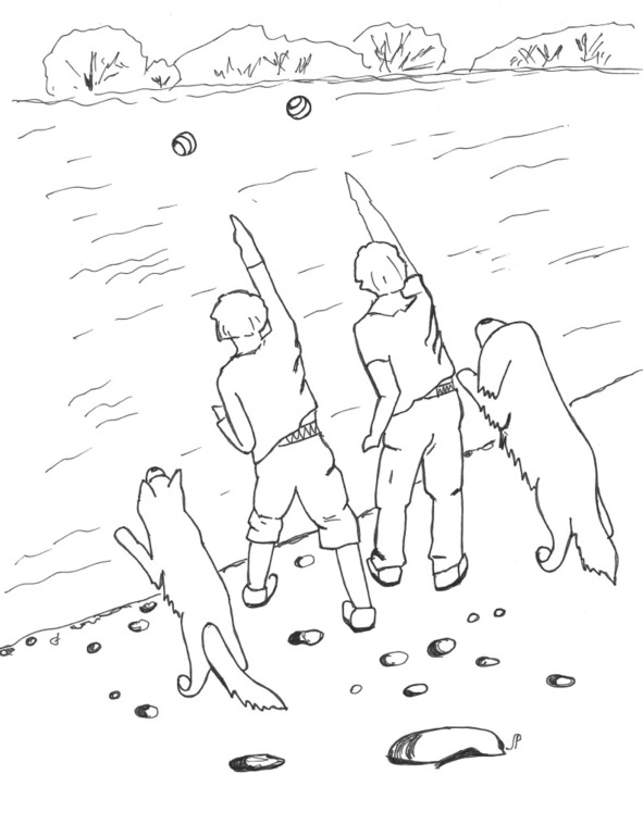Мысли собак мгновенно передались друзьям. Мальчишки одновременно размахнулись. Псы вытянулись в струнку и когда мячи оказались в воздухе, сорвались с места.