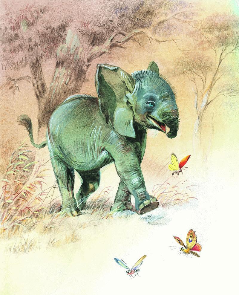 В отдалённые времена, милые мои, слон не имел хобота. У него был только черноватый толстый нос, величиною с сапог, который качался из стороны в сторону, и поднимать им слон ничего не мог. Но появился на свете один слон, молоденький слон, слонёнок, который отличался неугомонным любопытством и поминутно задавал какие-нибудь вопросы.