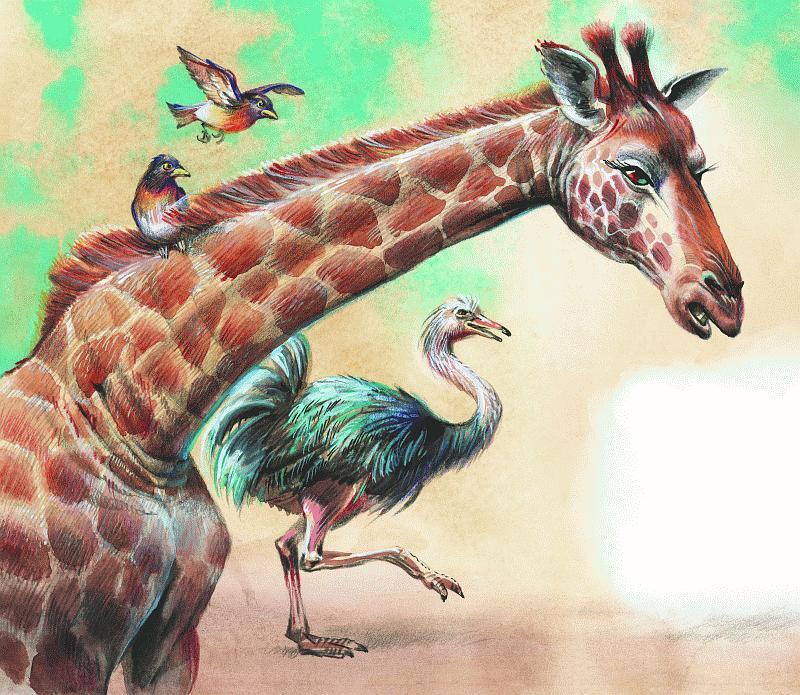 Он жил в Африке и всю Африку одолевал своим любопытством. Он спрашивал своего высокого дядю страуса, отчего у него перья растут на хвосте; высокий дядя страус за это бил его своей твёрдой-претвёрдой лапой. Он спрашивал свою высокую тётю жирафу, отчего у неё шкура пятнистая; высокая тётя жирафа за это била его своим твёрдым-претвёрдым копытом. И всё-таки любопытство его не унималось! Он спрашивал своего толстого дядю гиппопотама, отчего у него глаза красные; толстый дядя гиппопотам за это бил его своим широким-прешироким копытом. Он спрашивал своего волосатого дядю павиана, отчего дыни имеют такой, а не иной вкус; волосатый дядя павиан за это бил его своей мохнатой-премохнатой рукой. И всё-таки любопытство его не унималось! Он задавал вопросы обо всём, что только видел, слышал, пробовал, нюхал, щупал, а все дядюшки и тётушки за это били его. И всё-таки любопытство его не унималось!