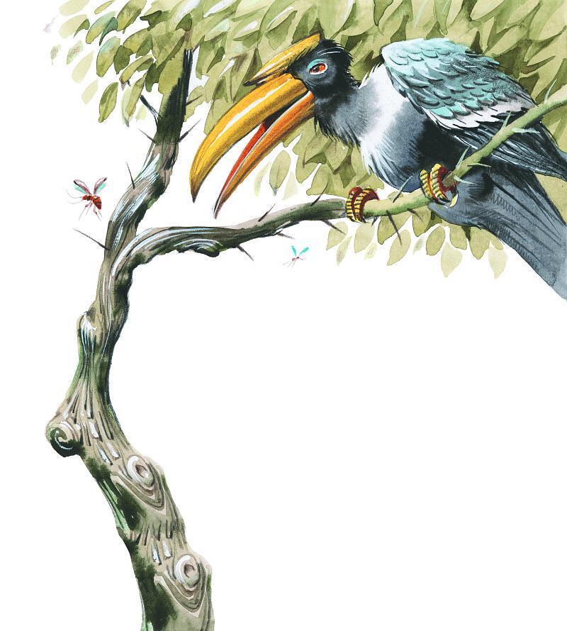 Когда наконец его оставили в покое, слонёнок увидел птицу колоколо, сидевшую на кусте терновника, и сказал: