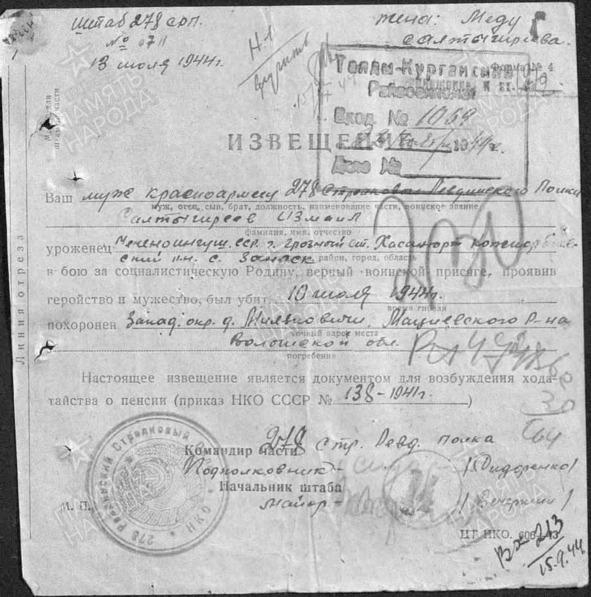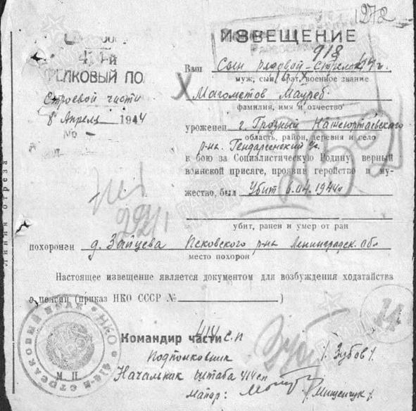 На сегодняшний день нет точной цифры, сколько же все-таки участников Великой Отечественной Войны из числа Чеченцев и Ингушей, и поэтому, некоторые граждане публицисты, говоря о том, что причиной выселения Вайнахов является массовое уклонение и дезертирство, как минимум лицемерят или оправдывают свою малоинформированность и ничтожность проведенных архивных изысканий. РВИО по ЧР проводило и будет продолжать работу по выявлению всех участников ВОВ и постараемся восстановить каждое имя Чеченца, отдавшего жизнь в борьбе с фашизмом. Но однозначно сегодня можем утверждать, что их было никак не менее нескольких десятков тысяч, в том числе и участников и Бело-Финской и Японской Войны. Постараемся увековечить память каждого из них, сколько бы лет и сил для этого не потребовалось.