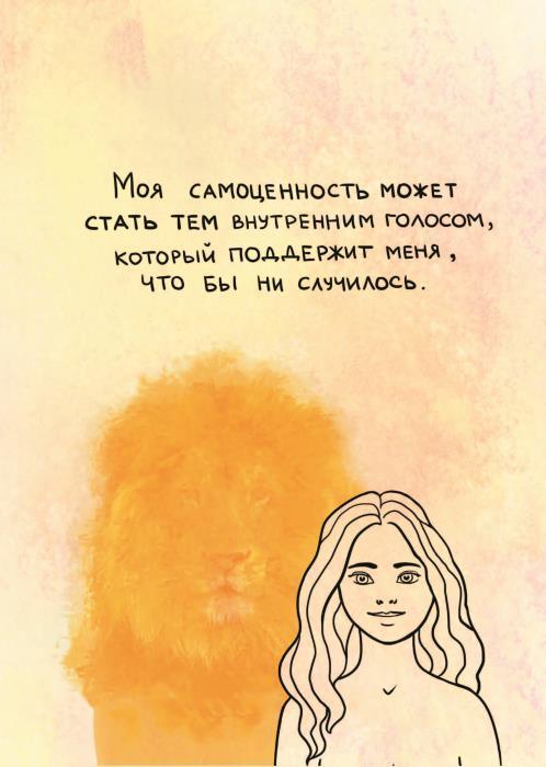 Самоценность – это не самолюбование, она не подразумевает, что я лучше всех, потому что вообще в принципе не рождается из сравнения себя с другими. Она не подразумевает также, что я безупречен, что я распрекрасный и не имею никаких изъянов, потому что самоценность не опирается на идею, что ценны только безупречные, совершенные или какие бы то ни было люди. Это не кострище, провозглашающее: «Я могу всё, я велик!» Скорее, это тихое свечение внутри, которое шепчет: «Я – ок, другой – ок, мир – ок», «Я достаточно хорошая/подходящая , чтобы выражать себя, добиваться того, что мне хочется, чтобы сближаться и получать любовь и уважение в отношениях, чтобы строить свою жизнь так, как мне видится верным для себя». Базовая линия, которая не меняется, остаётся стабильной, когда вы сталкиваетесь с неудачами или кризисами, не позволяя «уйти в минус».
