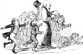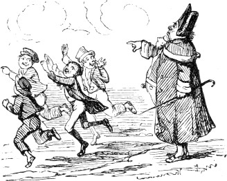 The truth is, that people are tired of crying, and find it much more agreeable to laugh. The sublime is out of fashion; the ridiculous is in vogue. A turn-up nose is now a more interesting object than a turn-down collar; and if it should be urged that the flowing locks of our young men are indicative of sentimentality by their length, let it be remembered that they are in general quite unaccompanied by a corresponding quality of face. It has been said that the schoolmaster is abroad:—true; but he is walking arm and arm with the Merry-Andrew; and the members, presidents, and secretaries of mechanics’ institutions, and associations for the advancement of everything, follow in his train. Nothing can be taught that is not palatable, and nothing is now palatable but what is funny. That boys should be instructed in the Latin language will be denied by few (although by some eccentric persons this has been done); that they can be expected to learn what they cannot laugh at will, to all reflecting minds, especially on perusing the foregoing considerations, appear in the highest degree unreasonable. To conclude:—let all such as are disposed to stare at the title of our work, ponder attentively on what we have said above; let them, in the language of the farce, “put this and that together,” and they will at once perceive the beneficial effect, which holding up the Latin Grammar to ridicule is likely to produce in the minds of youth. So much for the satisfaction of our senior readers. And now, no longer to detain our juvenile friends, let us proceed to business, or pleasure, or both:—we will not stand upon ceremony with respect to terms.