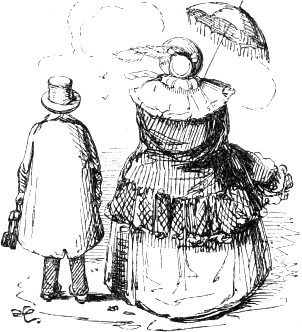 The Author’s tailor, though there are certain reasons why his name should not appear in print, desires to express his obligation to the talented artist for the very favourable impression which, without prejudice to truth, has been given to the public of his skill. The ease so conspicuous in the management of the surtout, and the thought so remarkable in the treatment of the trousers, fully warrant his admiration and gratitude.