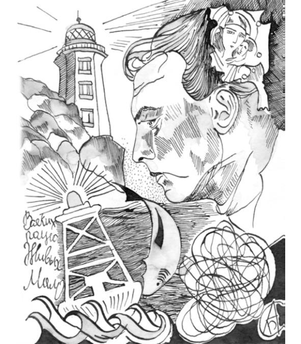 Кряхтит лишь старый смотритель — маячник. Он знает все правды мира, но молчит. Смотритель протирает большое лицо часов Фуко, стучит костяшками пальцев по вяленой рыбе, гладит алтынный подстаканник. На его ресницах лежит пыльца дальних стран и утренняя роса.