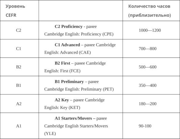 Как мы видим из таблицы, в среднем, чтобы достичь следующего уровня, требуется около 200 часов занятий с преподавателем. Таким образом, чтобы выучить английский с нуля до свободного общения на туристические темы во время поездок в англоязычные страны, вам потребуется добраться до уровня А2, для чего нужно 200 часов обучения с преподавателем. Уровень В2 предполагает свободно общение на любые бытовые и социа