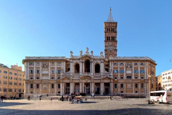 Посмотрел несколько церквей: Латеранскую базилику, Санта-Мария-Маджоре, Сан-Лоренцо-Фуори-ле-Мура. Это всё раннехристианские базилики, начало строительства которых относится к IV веку, имеющие каждая свои конструктивные особенности. Все они без купола, центральные нефы весьма широкие, так как перекрыты не каменными сводами, а стропилами, у первых двух — подвесные деревянные потолки искусной работы. Самое богатое убранство у Латеранской базилики (она же и самая перестроенная, что неудивительно: когда-то это была главная, папская церковь), самое впечатляющее — у Сан-Лоренцо-Фуори-ле-Мура: её тоже перестраивали, но не в обозримом прошлом, а веке в XII — XIII. В результате она имеет мощную колоннаду центрального нефа с гладкими колоннами (новая часть) и область хора с не менее мощными каннелированными колоннами и плоским антаблементом с надстроенной над ним аркадой второго яруса (трифорием). Подвесного потолка нет — открытые стропила.