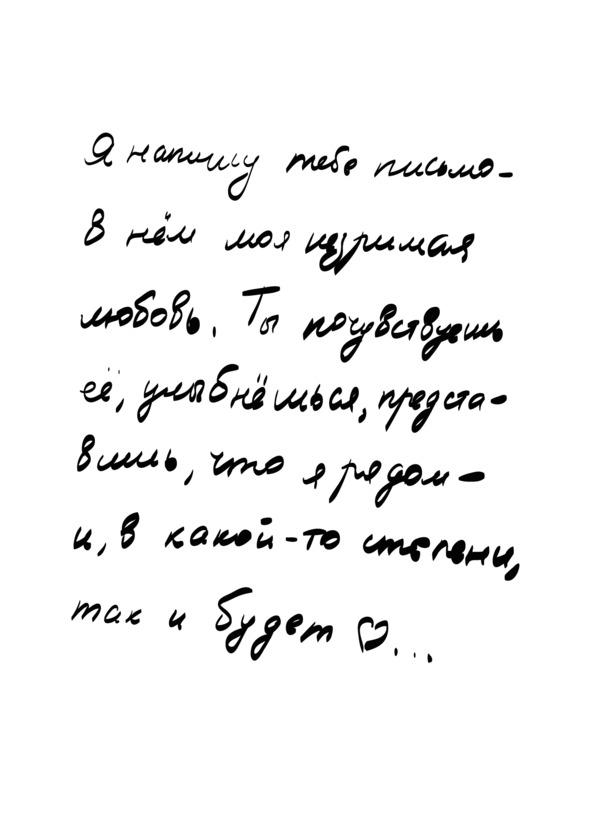 «Я напишу тебе письмо — в нем моя незримая любовь. Ты почувствуешь ее, улыбнешься, представишь, что я рядом — и, в какой-то степени, так оно все и будет.