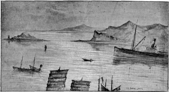 I went on board, and, our vessel's anchor being raised at four o'clock, we soon steamed past Battenberg Island and got away from the picturesque Bay of Nagasaki. This was the last I saw of Japan.