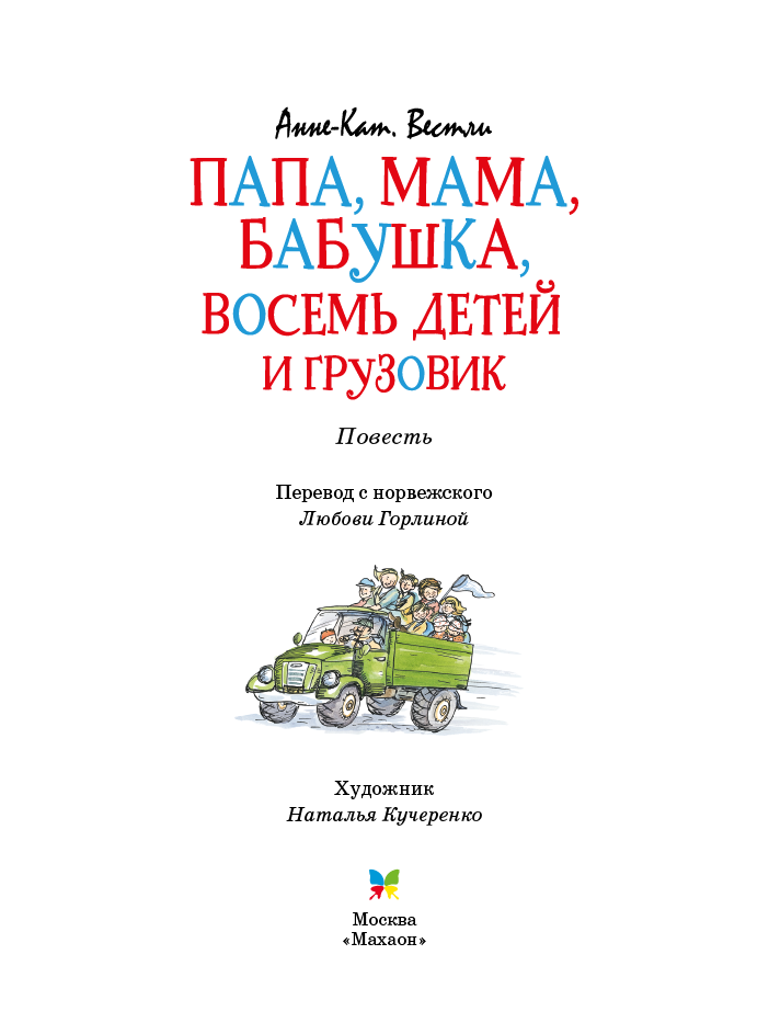 Папа, мама, бабушка, восемь детей и грузовик : повесть / Анне-Кат. Вестли ; пер. с норв. Л. Горлиной ; ил. Н. Кучеренко. – М. : Махаон, Азбука-Аттикус, 2022. – ил. – (Яркая ленточка).