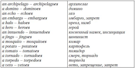 Particular Point: Исчисляемые существительные, оканчивающиеся на -o, образуют форму множественного числа при помощи окончания -es или -s: