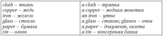 Particular Point: Слова обозначают конкретные предметы, изготовленные из данного материала: