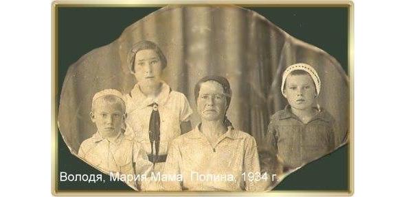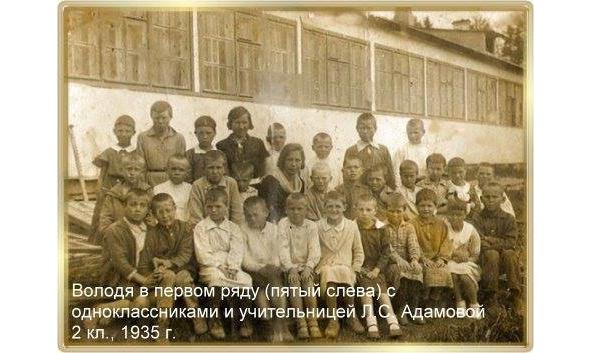 Весной тридцать четвёртого стряслась в семье большая беда. Отец с маленьким Володей пошли в баню и разгорячённые возвращались назад. Переправляясь через ручей, Егор Михайлович взял сынишку на руки, да подскользнулся на наледи и оба рухнули в ледяную воду. Пока шли до дому, сильный ветер обжигал до костей. Дарья Герасимовна с дочерьми не отходили от постелей слегших с воспалением лёгких Егора Михайловича и Володеньки. Думали, мальчик не выживет. Выжил, а вот Егор Михайлович умер, не дожив до сорока семи лет. Мать как могла поднимала троих детей. Но без мужа стало тяжко. И так без накоплений на новом месте жили, а тут лютая бедность одолевала. Володе иногда в холода и сырость неделями было нечего надеть в школу. Но выкарабкивались что было сил…