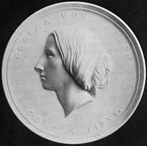 He met the Countess d'Agoult in the brilliant whirl of his artistic success. She was beautiful, accomplished, though her contemporaries declare she was not of a truthful nature. She was born Marie Sophie de Flavigny, at Frankfort-on-Main in 1805. Her father was the Vicomte de Flavigny, who had married the daughter of Simon Moritz Bethmann, a rich banker, originally from Amsterdam and a reformed Hebrew. She had literary ability, was proud of having once seen Goethe, and in 1827 she married Comte Charles d'Agoult. But social sedition was in the air. The misunderstood woman—no new thing—was the fashion. George Sand was changing her lovers with every new book she wrote, and Madame, the Countess d'Agoult—to whom Chopin dedicated his first group of Etudes—began to write, began to yearn for fame and adventures. Liszt appeared. He seems to have been the pursued. Anyhow, they eloped. In honour he couldn't desert the woman, and they made Geneva their temporary home. She had in her own right 20,000 francs a year income; it cost Liszt exactly 300,000 francs annually to keep up an establishment such as the lady had been accustomed to—he earned this, a tidy amount, for those days, by playing the piano all over Europe. Madame d'Agoult bore him three children: Blandine, Cosima, and Daniel. The first named married Emile Ollivier, Napoleon's war minister—still living at the present writing—in 1857. She died in 1862. Cosima married Hans von Bülow, her father's favourite pupil, in 1857; later she went off with Richard Wagner, married him, to her father's despair—principally because she had renounced her religion in so doing—and to-day is Wagner's widow. Daniel Liszt, his father's hope, died December, 1859, at the age of twenty. Liszt had legitimatised the birth of his children, had educated them, had dowered his daughters, and they proved all three a source of sorrow.