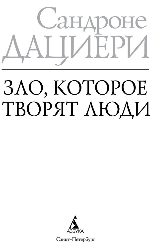 Зло, которое творят люди : роман / Сандроне Дациери ; пер. с ит. Л. Карцивадзе. — СПб. : Азбука, Азбука-Аттикус, 2024. — (Звезды мирового детектива).