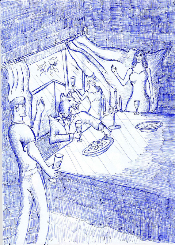 — Прошу Вас, мы вас ждали к семи, опаздываете голубчик-заговорил пес на хорошем человеческом языке. Сереге стало не по себе, тут вышла кошка соседки, в модном платье: