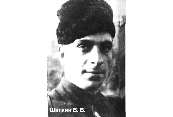 «…Работает командиром взвода, с работой справляется хорошо. Взвод по боевым действиям находится на первом месте в отряде. Группа взвода тов. Шапкина под командованием мл. лейтенанта ЗИНОВКИНА 6.5.42 спустила под откос немецкий эшелон. 3.3.42 тов. Шапкин совместно с взводом первый вступил в бой в дер. Любыш. Немцы с восточной стороны в количестве 120 человек ворвались в деревню. Тов. ШАПКИН первый бросился в бой и лично со своего автомата уничтожил 4 гитлеровцев. В результате боя немцы были выбиты из деревни, бой продолжался 7 часов. В этом бою немцы потеряли боле 60 человек, взято в плен 3 немца. 12.3.42 в д. Лукавец тов. ШАПКИН тоже участвовал в бою совместно с взводом где лично автоматом уничтожил 5 фашистов. В бою показал себя смелым командиром…»
