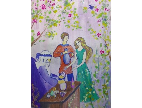 Но напекла ей в дорогу пирожков, дала с собою вышитый рушник и яблоко, и орехов кедровых насыпала. Сложила Тая всё это в сумочку, забросила её на плечо, и, попрощавшись с матушкой, отправилась в путь-дорогу.