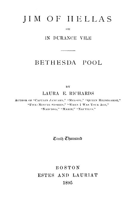 JIM OF HELLAS; or, IN DURANCE VILE, and a companion story, BETHESDA POOL. 16mo, 50 cents.