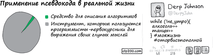 Заметили, что этот пример полностью игнорирует синтаксические правила языков программирования? В псевдокод можно вставлять даже разговорные фразы! Когда вы пишете псевдокод, дайте своей творческой мысли течь свободно — как при составлении блок-схем (рис. 1.3