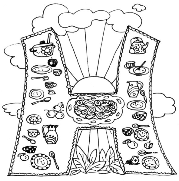 Вообще-то пешкам завтракать не обязательно. И обедать тоже. И вообще есть не обязательно. Они могут поесть понарошку: положить, например, в тарелку одуванчиковых парашютиков, посахарить пылью, а потом сдуть всё — и тоже будет считаться, будто они поели. Но всё-таки пешки редко пропускали завтрак, обед, полдник и ужин (особенно полдник): потому что есть вместе, во-первых, весело, а во-вторых — вкусно. И к тому же ни ладушки, ни слоны, ни тем более король с королевой не следили, чтобы пешки съедали всё. Хочешь — лопай хоть целую кастрюлю, не хочешь — сиди рядышком с другими и стучи расписной ложкой по столу. Или беги по своим пешечьим делам.