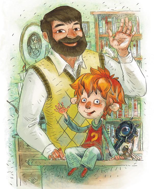 Здравствуйте, ребята! Меня зовут Чевостик. Я живу на книжной полке в библиотеке у дяди Кузи. Не удивляйтесь, я небольшого роста, а нижняя полка в книжном шкафу дяди Кузи очень высокая и просторная, поэтому мне на ней хорошо и удобно. Какой я? Похож на обыкновенного мальчишку, волосы рыжие, характер весёлый. Дядя Кузя в шутку зовёт меня Чевочка с хвостиком. Но никакого хвоста у меня нет, зато есть ушки на макушке. Больше всего на свете я люблю узнавать новое, поэтому всё время задаю дяде Кузе всякие вопросы. О чём бы я ни спросил, он всё знает и мне рассказывает. Это потому, что дядя Кузя очень умный. Он прочитал много-много разных книг. А ещё мы с ним любим путешествовать! В путешествиях нам помогает времяскок. Это такой прибор, его дядя Кузя изобрёл. Набираешь на времяскоке место и время, куда хочешь попасть, раз-два — и уже там! Сегодня мы наверняка тоже куда-нибудь отправимся!