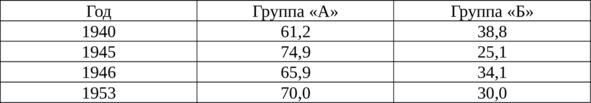 2) Проанализируйте соотношение производственных групп «А» и «Б» в общем объёме промышленности СССР в 1940 — 1953 гг. Дайте обоснование этому соотношению в контексте внутренней и внешней политики СССР.
