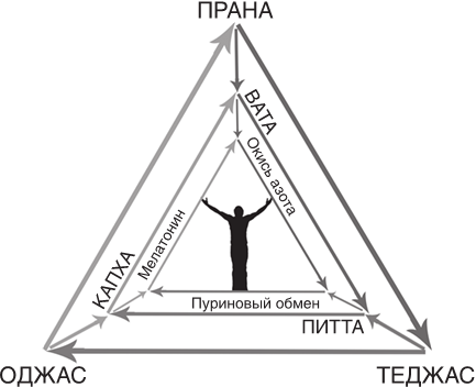 Древними мудрецами было определено, что в природе существуют три первичных источника жизни: Прана (жизненная энергия), Теджас (жизненный огонь) и Оджас (жизненная сила). Прану, энергию, пронизывающую всё живое, современная медицина ни с чем не сравнивает, нет такого в ней понятия, Теджас несколько грубо сравнивают с пищеварительными процессами организма, Оджас – с иммунитетом.
