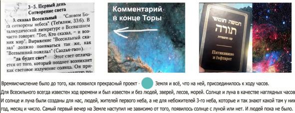 «…И сказал Бог: да будут светила на тверди небесной [для освещения земли и] для отделения дня от ночи, (это понятно а вот важнейшая часть текса) и для знамений, и времен, и дней, и годов.»