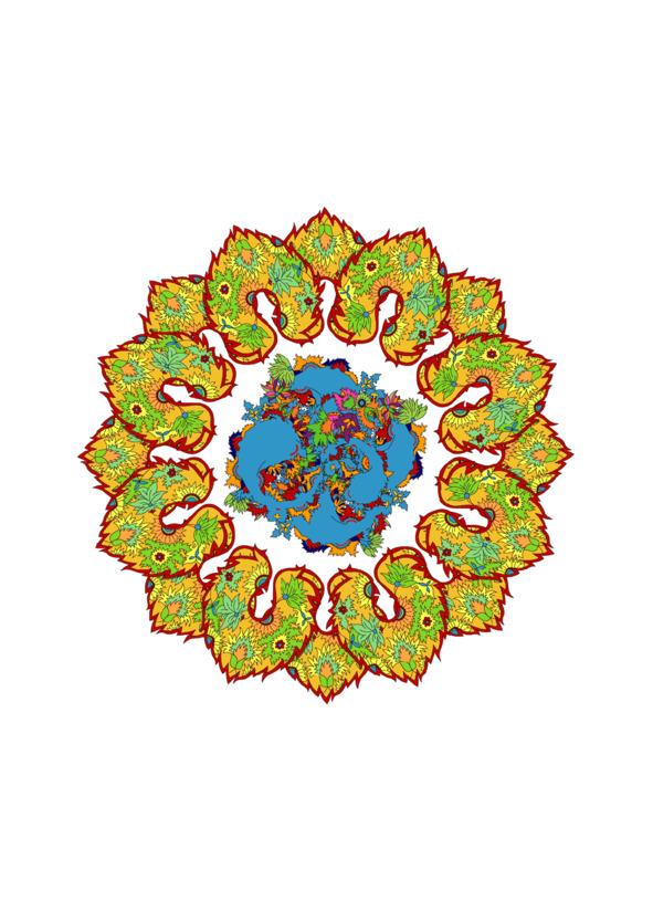 • Центрально-лучевое исполнение (сюда входит круговое исполнение и его разновидности). Чаще всего такие изображения называли «розетками». Использовались как для декора, так и самостоятельно. Орнамент может быть как симметричным, так и асимметричным.