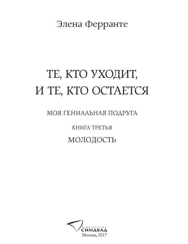 Те, кто уходит и те, кто остается / Элена Ферранте ; [пер. с ит. О. Ткаченко]. — М.: Синдбад, 2017.