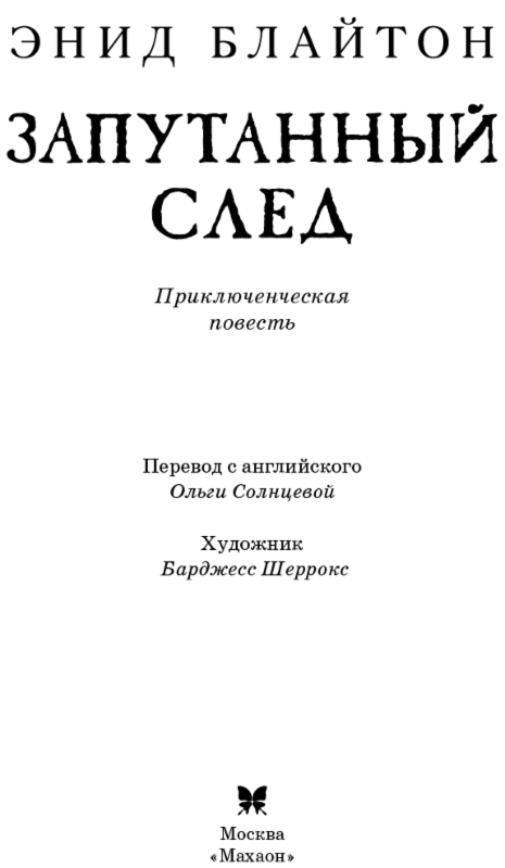 Запутанный след : прикл. повесть / Энид Блайтон ; пер. с англ. О. М. Солнцевой ; худож. Барджесс Шеррокс. – М. : Махаон, Азбука-Аттикус, 2018.