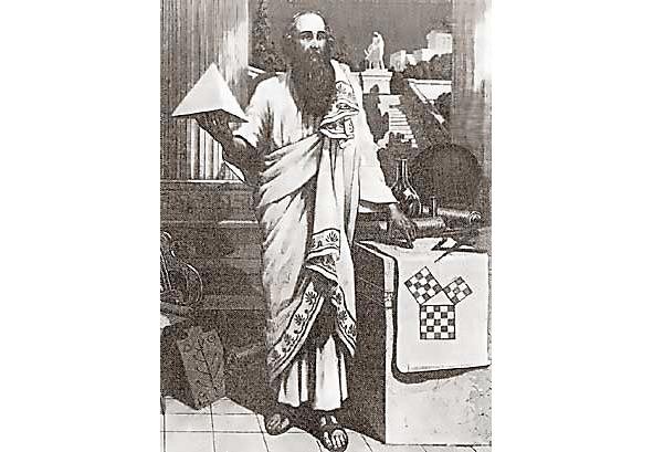 [1] Pitágoras. (c. 570—500 AC) Matemático y filósofo de la Antigua Grecia. Nació y vivió en la isla de Samos. Después se trasladó a la ciudad de Crotona (Sur de Italia) donde fundó una escuela filosófico-científica.