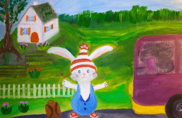 Он жил в очень тихом и спокойном месте: через поле, лес и холм от деревни. По ту сторону холма стоял его маленький, но очень уютный белый домик с крышей, покрытой зеленой травой. На окнах висели расписные ставни, а перед входом в дом была деревянная просторная веранда, украшенная горшочками с цветами. Перед домом был огородик, где Беляшик выращивал сочную морковку, белокочанную капусту и огромную сладкую клубнику.