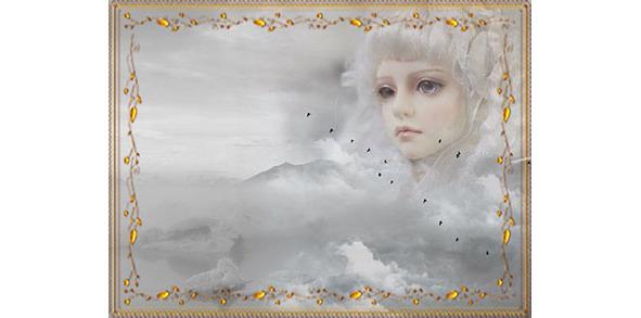 Она шла прямо по небу — стройная, высокая, в простой домотканой длинной накидке, которая начиналась с головы в форме капюшона, прикрывала все ее тело и заканчивалась широким шлейфом, спокойно плывущим сзади нее по легким весенним облакам. Длинное платье из того — же материала и такого — же светло — кремового цвета — было свободным, скрывало ее фигуру и при этом было все равно необыкновенно женственным. Маленькие босые ноги ступали легко и уверенно. Прекрасное лицо, обрамленное длинными русыми волосами, было слегка наклонено вниз, большие светлые глаза, прозрачные, как родниковая вода, с любовью смотрели на маленькую золотоволосую кудрявую девочку, которую она несла в руках.
