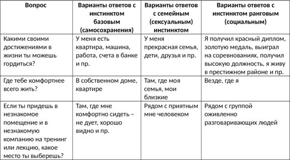 Ведущий инстинкт можно определить, задав человеку всего несколько вопросов: