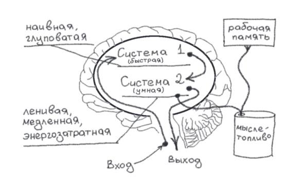 Канеман отмечает, что Система 2 «ленива» — человеку некомфортно её задействовать без необходимости. Медленное мышление требует усилий, и мозг старается по возможности полагаться на автоматическое, пусть и менее точное, решение (Экономия мыслетоплива). Этот принцип лежит в основе многих когнитивных искажений и ошибок восприятия.