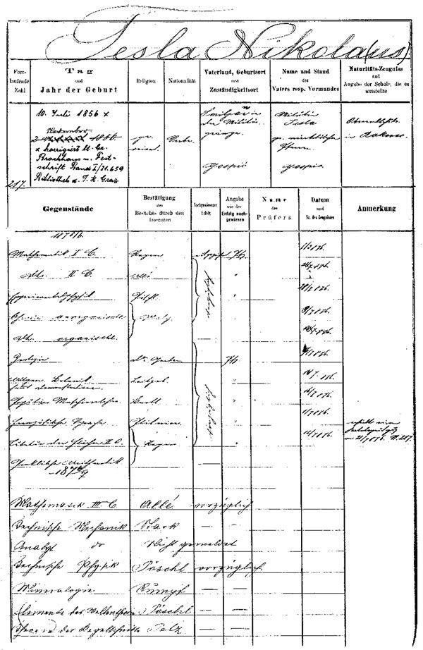 «Меня отправили в Высшую техническую школу в Граце… по мнению моего отца, одно из лучших учебных заведений с хорошей репутацией, – пишет Тесла. – Этого момента я страстно ждал и начал учебу… с твердым намерением добиться успеха. Уровень моей подготовки был выше среднего благодаря урокам моего отца и сложившимся благоприятным возможностям. Я выучил несколько языков и просмотрел книги некоторых библиотек, собрав из них более-менее полезную информацию».