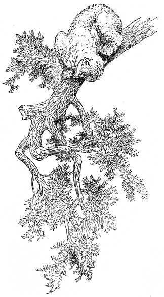 The mother came out first and sagged away backwards down the tree, swinging her head from side to side to look down and see how far yet, in true bear fashion. The four little ones followed her, clawing and whining their way to the bottom—all but one, who when half-way down turned and jumped, landing on his mother's soft back to save himself trouble. Then she led the way to the doorway among the rocks, and the young followed in single file, winding about on her trail, stopping and sniffing when she did, and imitating her every action, just as young bear cubs do when roaming about the woods.