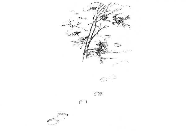 Once, at early twilight, I lay in hiding among some old roots at the end of this little beach, watching a curious game. Eight or ten deer, does and fawns and young spike bucks, had come out into the open and were now running rapidly in three circles arranged in a line, so,