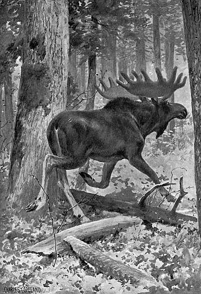 Formerly caribou might be found on these same waterways, and they are the most curious and interesting game that can be hunted without a gun; but years ago a grub destroyed all the larches on which the wandering woodland caribou depend largely for food. The deer, which are already as many as the country can support in winter, take care of the rest of the good browse, so that there was nothing left for the caribou but to cross over the line into New Brunswick, where larches are plenty and where there is an abundance of the barren moss that can be dug up out of the snow. Better still, if one is after caribou, is the great wilderness of northern Newfoundland, where the caribou spend the summer and where from a mountain top one may count hundreds of the splendid animals scattered over the country below in every direction. And hunting them so, with the object of finding out the secrets of their curious lives,—why, for instance, each herd often chooses its own burying-ground, or why a bull caribou loves to pound a hollow stump for hours at a time,—this is, to my mind, infinitely better sport than the hunt for a head where one waylays them on their paths of migration, the paths that have been sacred for untold generations, and shoots them down as they pass like tame cattle.