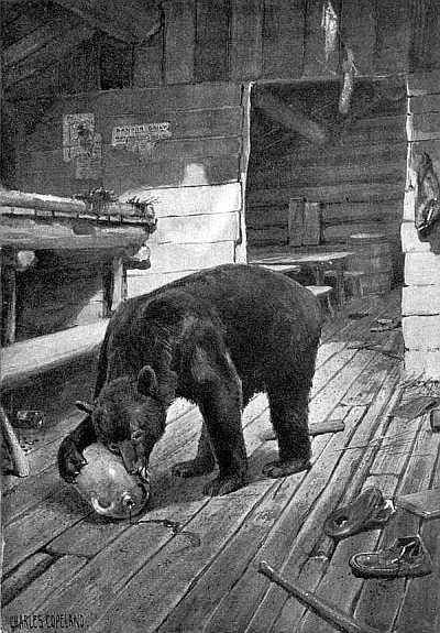 AN old Indian, whom I know well, told me that he once caught a bear in his deadfall. That same day the bear's mate came and tried to lift away the heavily weighted log that had fallen on her back and crushed her. Failing in this he broke his way into the inclosure; and when the Indian came, drawn in on silent, inquisitive feet by a curious low sound in the air, the bear was sitting beside his dead mate, holding her head in his arms, rocking it to and fro, moaning.—